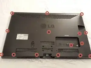 Снимите 15 винтов с крестообразной отверткой с задней панели телевизора.