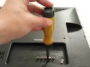 Осторожно снимите черную пластиковую заднюю панель телевизора, чтобы получить доступ к внутренним электронным компонентам.