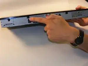 Сначала переверните устройство так, чтобы нижняя часть была направлена вверх. Существует 9 черных зажимов, которые крепят пластиковый корпус к корпусу. Удалите эти зажимы из корпуса.