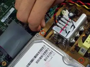 Снимите два винта T-9 длиной 0,31 дюйма, фиксирующие блок питания.