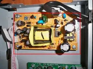 Поднимите плату питания. Будьте осторожны, не касайтесь нижней части платы питания. Даже при отключении она может сохранить заряд.