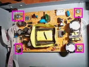 Удалите четыре винта с ведущей головкой, удерживающих плату питания.