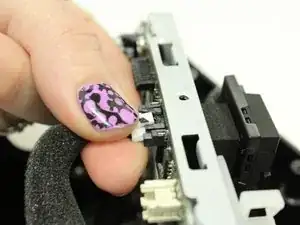 Отсоедините белый разъём, нажав на фиксатор и осторожно вытянув разъём из гнезда.