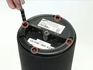 Снимите четыре винта PH1 Phillips (9,5 мм x 1,6 мм) с корпуса портовой части динамика.