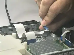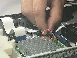 Найдите крупный шлейфовый кабель, соединяющий материнскую плату с портовой платой.