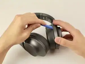 Начните с вставки пластикового инструмента iFixit в щель между жестким пластиком и наушником, затем аккуратно приложите давление до тех пор, пока они не разделятся. Возможно, потребуется повторить процесс с обратной стороны до полного отделения.