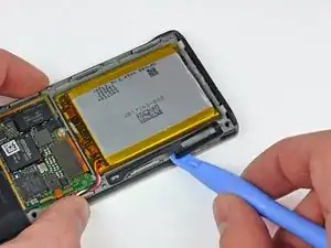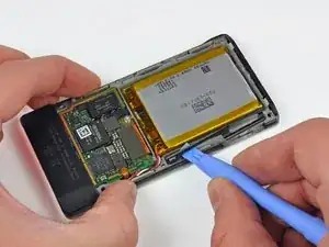 Используйте инструмент для открытия Zune, чтобы аккуратно снять рычаг медиакнопки с поста, влитого в внутреннее шасси.