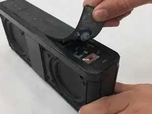 Верните динамик в вертикальное положение. Используйте металлическую лопатку, чтобы приподнять резиновую накладку и открыть кнопки под ней.