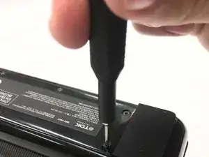 Переверните устройство так, чтобы нижняя часть была наверху. Снимите винты крышки батарейного отсека при помощи отвертки iFixit TR7.