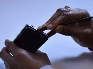 Используя лопатку, вставьте кончик между передней и задней крышкой, чтобы приоткрыть их.