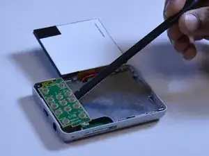 Отогните экран LCD от средней пластины, чтобы получить доступ к пространству вокруг чипа кнопки ввода.