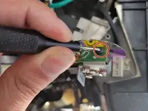 Удалите один винт Phillips 2 мм, который крепит печатную плату к боковине цветового диска.