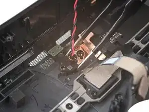 Кабель кнопки громкости слегка приклеен к левому внутреннему кожуху петли.