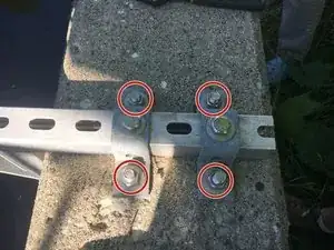 С помощью разводного ключа или торцевого ключа 1/2" снимите четыре винта с шестигранной головкой 1/2", крепящие старый узел к маленьким швеллерам.