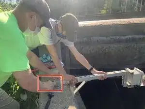 Перед снятием каких-либо деталей поверните длинный швеллер (все ещё прикреплённый к узлу) так, чтобы он больше не находился над водой.