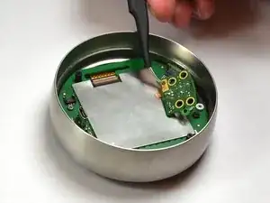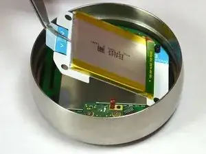 Используйте пинцет, чтобы вытащить батарею вверх и от дисплея.