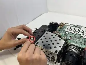 Полностью снимите верхнюю половину корпуса проектора и отложите её в сторону.