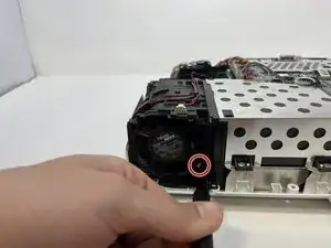 Используйте крестовую отвёртку Phillips #1, чтобы выкрутить три серебряных винта 7 мм, фиксирующие рамку вентилятора.