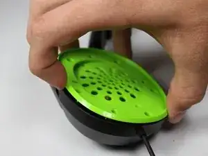 Вставьте плоский металлический предмет (например, инструмент Jimmy от iFixit) между зелёной и чёрной пластиковыми частями гарнитуры.