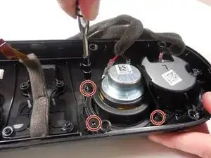 Используя крестовую отвёртку #2, выкрутите 4 винта (8 мм, крестовые #2 maxi-loc), которые крепят динамик к корпусу.