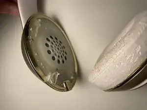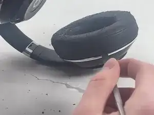 Вставьте лопатку между пластиковой частью левого наушника и амбушюром.