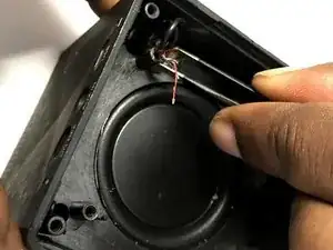 Отсоедините провода от аккумулятора динамика с помощью пинцета или аккуратно защипнув их для снятия.