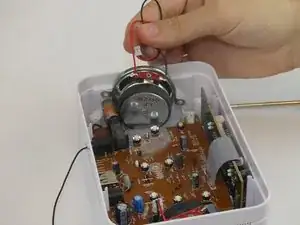 После того как провод динамика удален, вытяните динамик прямо вверх и вытащите его из радиоприемника.