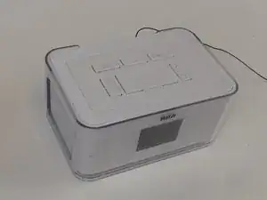 Это может быть сложнее сделать, если верхняя часть еще не снималась ранее, но может быть проще перевернуть будильник вверх дном для этого шага.