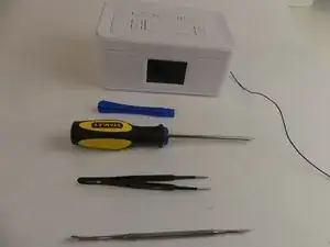 Возьмите свой нейлоновый инструмент для поддевания и вставьте его между внешним корпусом и верхней частью радиоприемника. Осторожно подденьте верхнюю часть и снимите ее.