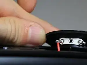 Используйте пластиковый открыватель, чтобы аккуратно приподнять динамик, чтобы увидеть подключенные провода.
