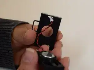 Осторожно разведите тонкую серебристую рамку, которая обрамляет устройство, и снимите темно-пурпурную линзу.