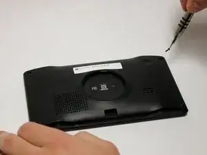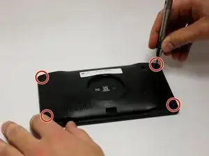 С помощью отвертки Torx T4 выкрутите все четыре винта (1/4 дюйма, 6,35 мм) на задней панели устройства.