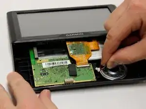 Аккуратно отсоедините провода, подключающие динамик к плате, с помощью пальцев.
