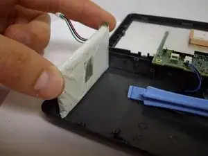 Используя пластиковый инструмент для открывания в качестве рычага, приподнимите батарею из корпуса. Это может быть довольно сложно, так как батарея приклеена к корпусу. Не бойтесь использовать силу и хороший рычаг.