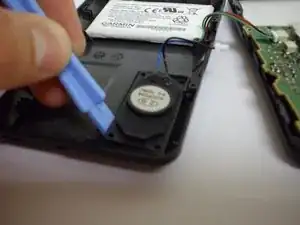 С помощью пластикового инструмента для открывания приподнимите динамик от устройства. Динамик приклеен к корпусу, поэтому используйте силу и рычаг.