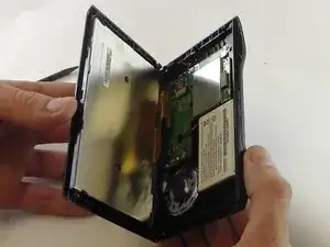Делайте это медленно, чтобы случайно не порвать ленточный кабель, соединяющий дигитайзер с платой, а также не разъединяйте половины полностью, так как это может порвать ленточный кабель.