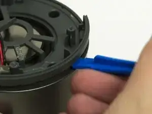 Осторожно поднимите центральную пластиковую часть и проденьте провод динамика через отверстие.