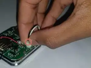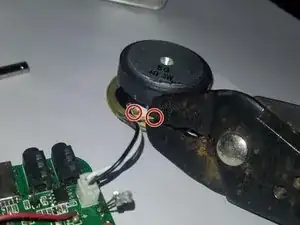 Отсоедините провод динамика от платы, зажав небольшой зажим и вынимая его, покачивая.