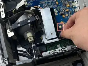 Извлеките белый шлейф с синим концом из разъёма.