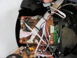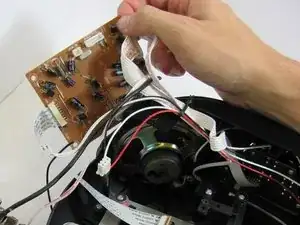К этой плате прикреплены два белых ленточных кабеля. Снова будьте осторожны, чтобы не растянуть их.