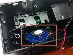 Соскоблите клей с помощью инструмента для открытия, чтобы отделить динамик от черных часов.