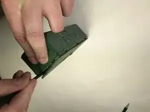 Используя пинцет, осторожно отсоедините провод аккумулятора от платы и извлеките панель вместе с прикреплённым аккумулятором.