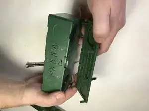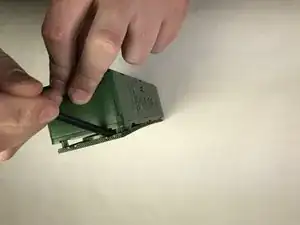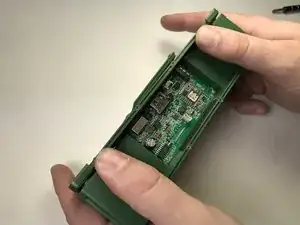 Руками отогните панель с верхней части устройства, чтобы открыть плату устройства и аккумулятор, прикреплённый к внутренней стороне панели.