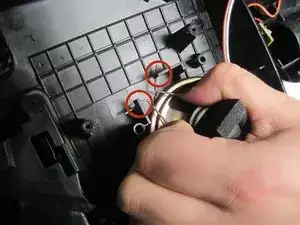 Сожмите два ушка, удерживающие динамик на месте, и уберите металлическую деталь.