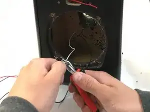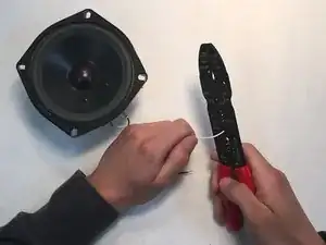 Шаг 4: Осторожно перережьте 2 провода, идущие к динамику. Убедитесь, что разрез выполнен примерно на половине длины проводов от динамика.