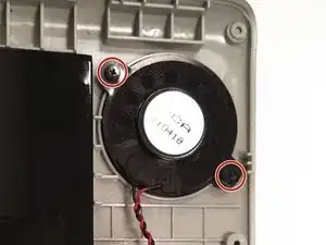 Удалите два винта Phillips #00 длиной 4 мм, удерживающие сборку динамика, и извлеките динамик.