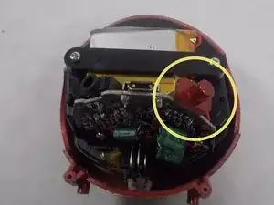 Снимите красную накладку переключателя вкл/выкл с устройства.