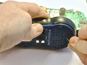Осторожно откройте заднюю панель радиостанции. Используйте плоскую отвёртку, чтобы медленно разделить две половины корпуса.