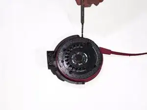 Используя пластиковые инструменты для вскрытия, аккуратно подденьте динамик от основания наушника.