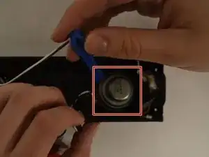 Найдите два винта с крестовой головкой Phillips (длина — 5/16", диаметр головки — 1/8"), удерживающие динамик, и удалите их.